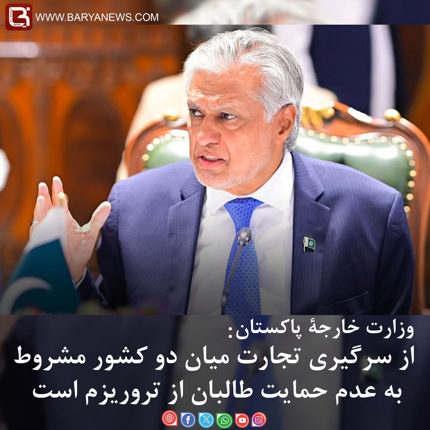 بریانیوز:(۲قوس/لیندی) وزارت خارجۀ پاکستان بار دیگر حکومت سرپرست امارت اسلامی را مسوول بسته ماندن مرزها و توقف تجارت با افغانستان دانست. طاهر اندرابی، سخنگوی این وزارت، گفته است که شرط بازگشایی گذرگاههای مرزی و از سرگیری تجارت میان دو کشور، توقف آنچه او «حمایت حکومت طالبان از تروریسم» خواند، میباشد.