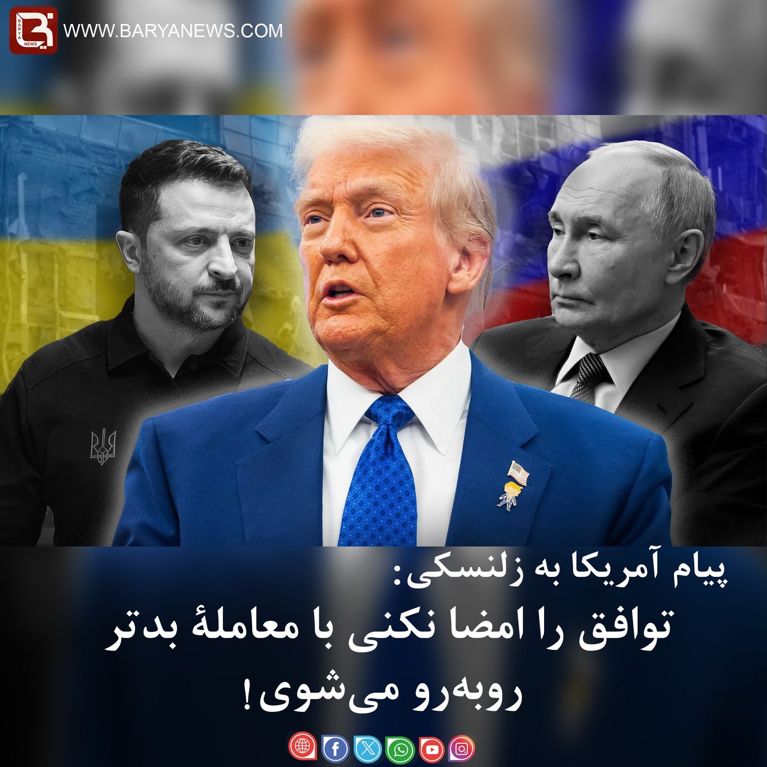 بریانیوز:(۲قوس/لیندی) براساس گزارش رسانههایی مانند رویترز و واشینگتنپست، دولت دونالد ترامپ به اوکراین هشدار داده است که اگر تا پنجشنبه، ۶ قوس، طرح صلح پیشنهادی ترامپ را امضا نکند، ارسال سلاح و اطلاعات استخباراتی به کییف متوقف خواهد شد.