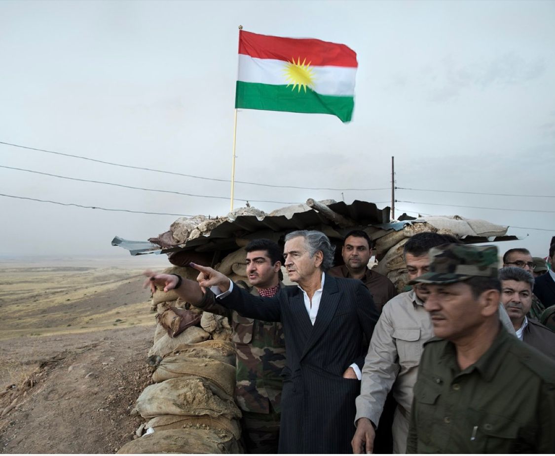 درتصویرذیل برنارد هنری لوی با افراد مسلح درکردستان عراق دیده میشود.