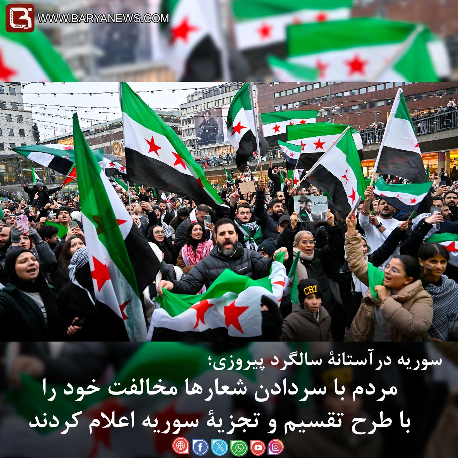 سوریه درآستانۀ سالگرد پیروزی؛ مردم با سردادن شعارها مخالفت خود را با طرح تقسیم و تجزیۀ سوریه اعلام کردند