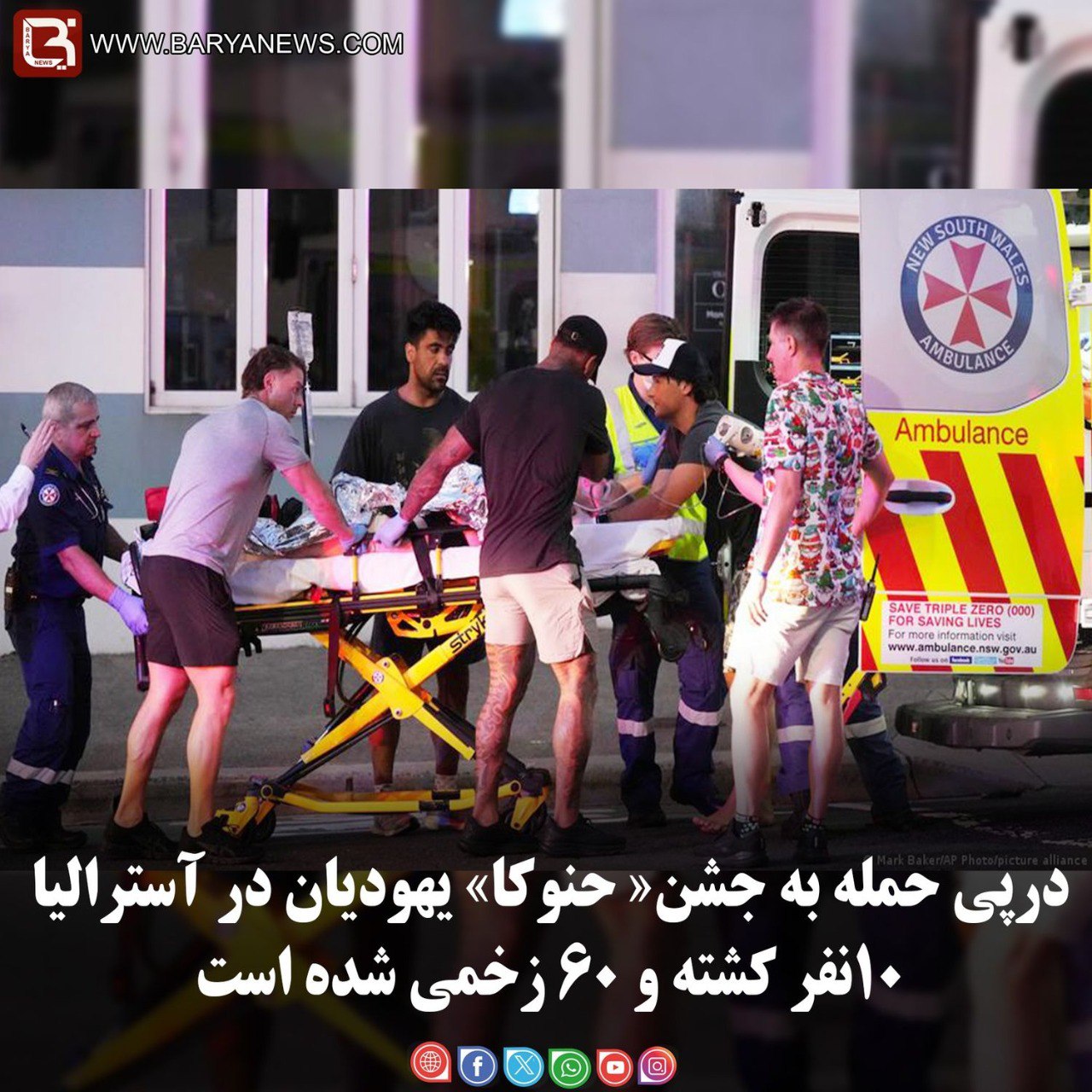 در پی تیـراندازی در جریان مراسم یهودیان موسوم به جشن «حَنوکا» در ساحل بوندای استرالیا، منابع اسرائیل از کـشته شدن دستکم ۱۰ نفر و زخمی شدن حدود ۶۰ تن خبر دادهاند.