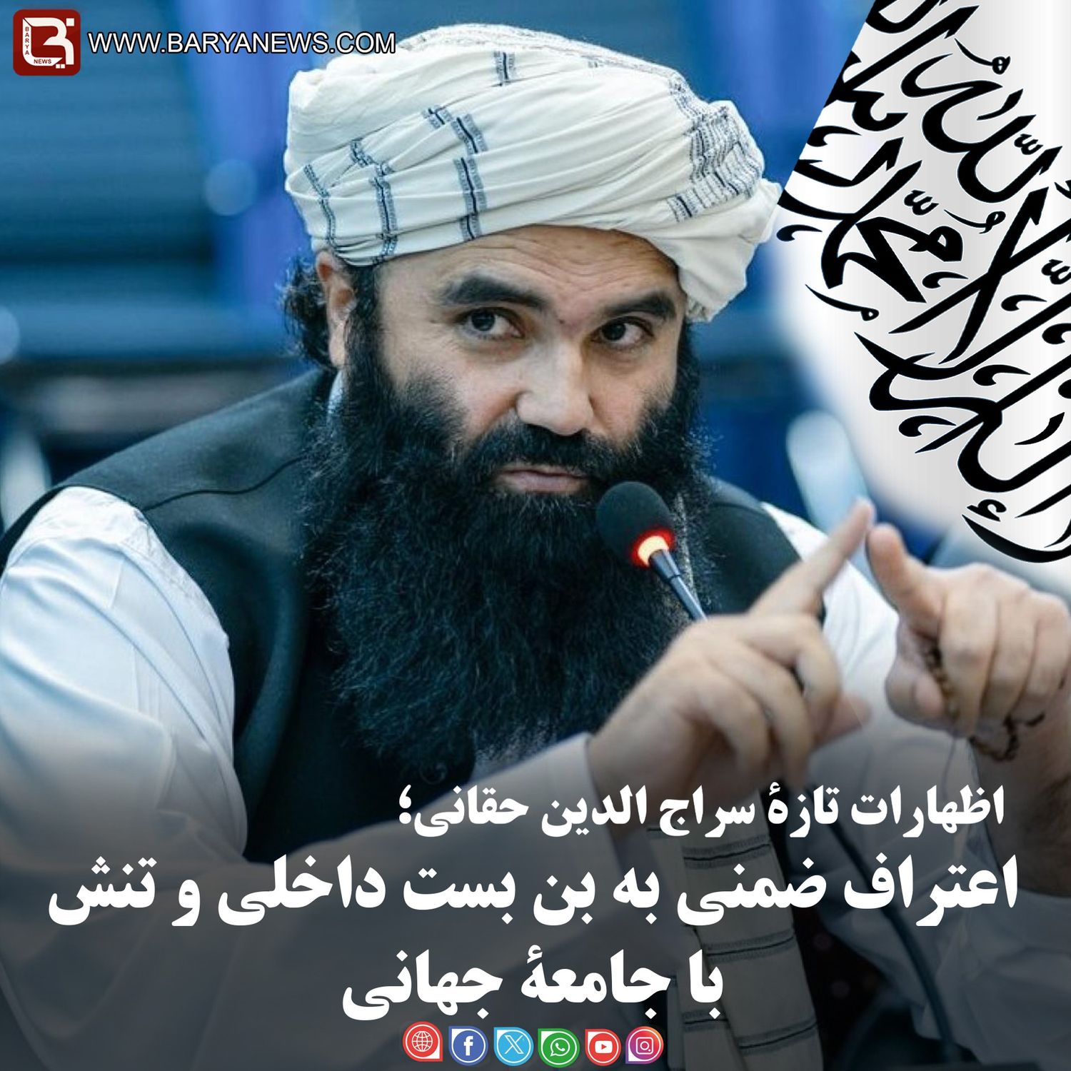 اظهارات تازۀ سراج الدین حقانی؛ اعتراف ضمنی به بن بست داخلی و تنش با جامعۀ جهانی
