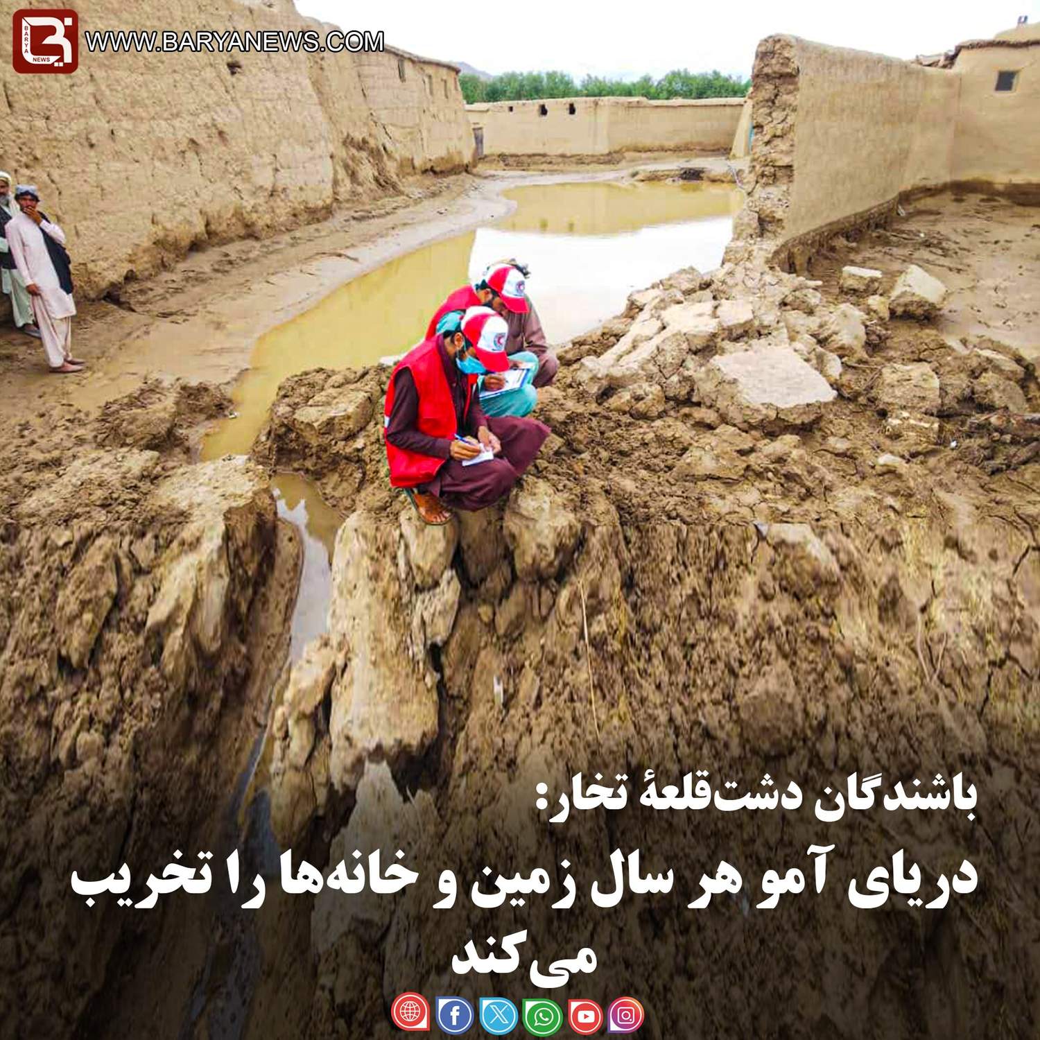 باشندگان ولسوالی دشتقلعۀ ولایت تخار میگویند که، با خیزش آب دریای آمو در فصل گرما، دهها جریب از خاک کشور بالخصوص جنگلها و زمینهای کشاورزی، همهساله تخریب میشود.