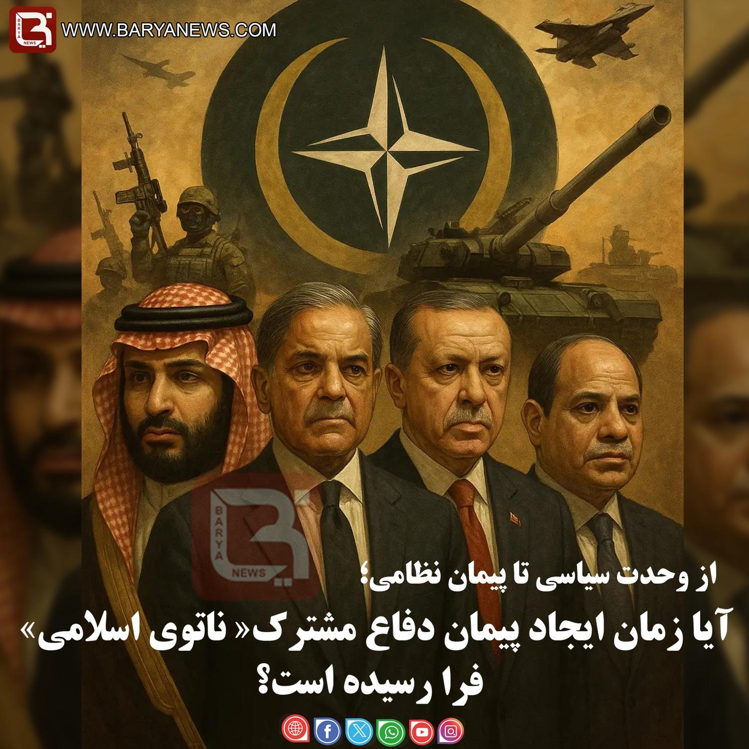 این درحالیست که خواجه محمد آصف وزیر دفاع پاکستان به تاریخ ۱۶ سبتامبر۲۰۲۵ با تاکید بر اینکه تجاوزگری اخیر رژیم اسرائیل به قطر هرگز بدون رضایت قبلی آمریکایی ها نبوده گفت که زمان تشکیل ناتوی اسلامی فرا رسیده است و مسلمانان باید دشمنان دوست نما را تشخیص دهند.