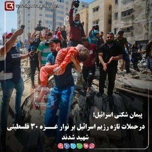 درحملات تازۀ رژیم اسرائیل بر نوار غــزه ۳۰ فلسطینی شهید شدند