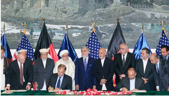 د افغانستان او امریکا ترمنځ امنیتي تړون د ۱۳۹۳ کال د میزان په ۸مه، د سې شنبې په ورځ، د محمد اشرف غني د حکومت په پیل کې د ملي امنیت سلاکار محمد حنیف اتمر او په کابل کې د امریکا د متحدو ایالتونو سفیر جیمز کاننگهم له خوا لاسلیک شو.