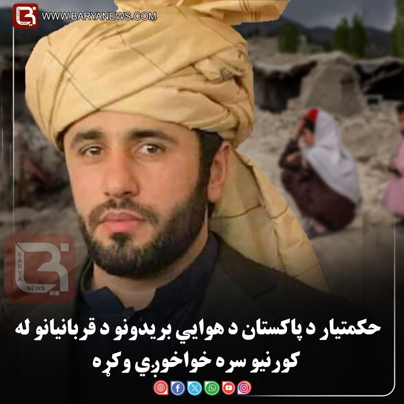 بریانیوز:(یکشنبه،۳ حوت۱۴۰۴) حبیب الرحمن حکمتیار د افغانستان سیاسي فعال، نن یکشنبه، د حوت ۳ مه، د شنبې په ورځ، د حوت ۲ مه، د پاکستان د هوايي بریدونو پر وړاندې چې پر بېلابېلو ولایتونو او سیمو د افغانستان ترسره شول، د قربانیانو له کورنیو سره خپله خواخوږي څرګنده کړه.