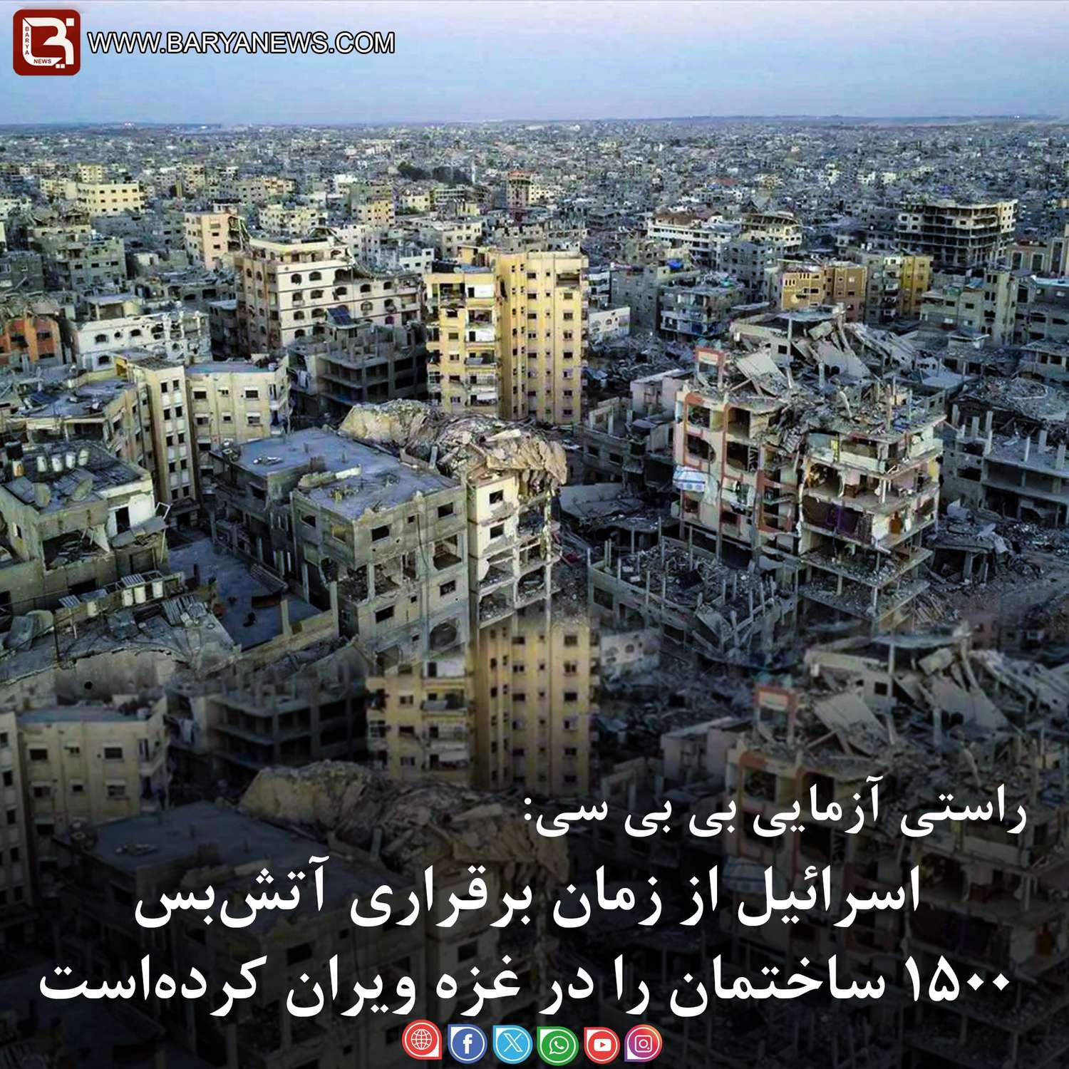 راستی آزمایی بی بی سی: اسرائیل از زمان برقراری آتشبس ۱۵۰۰ ساختمان را در غزه ویران کردهاست