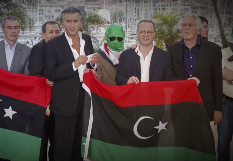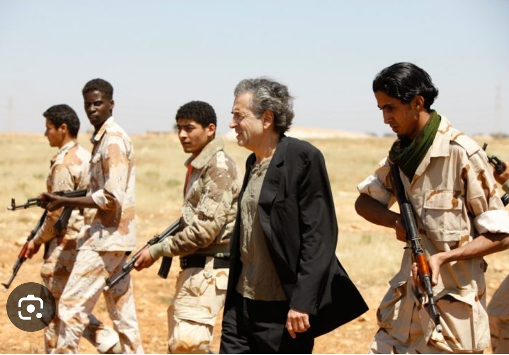 درتصویرذیل برنارد هنری لوی با افراد مسلح درلیبیا دیده میشود.
