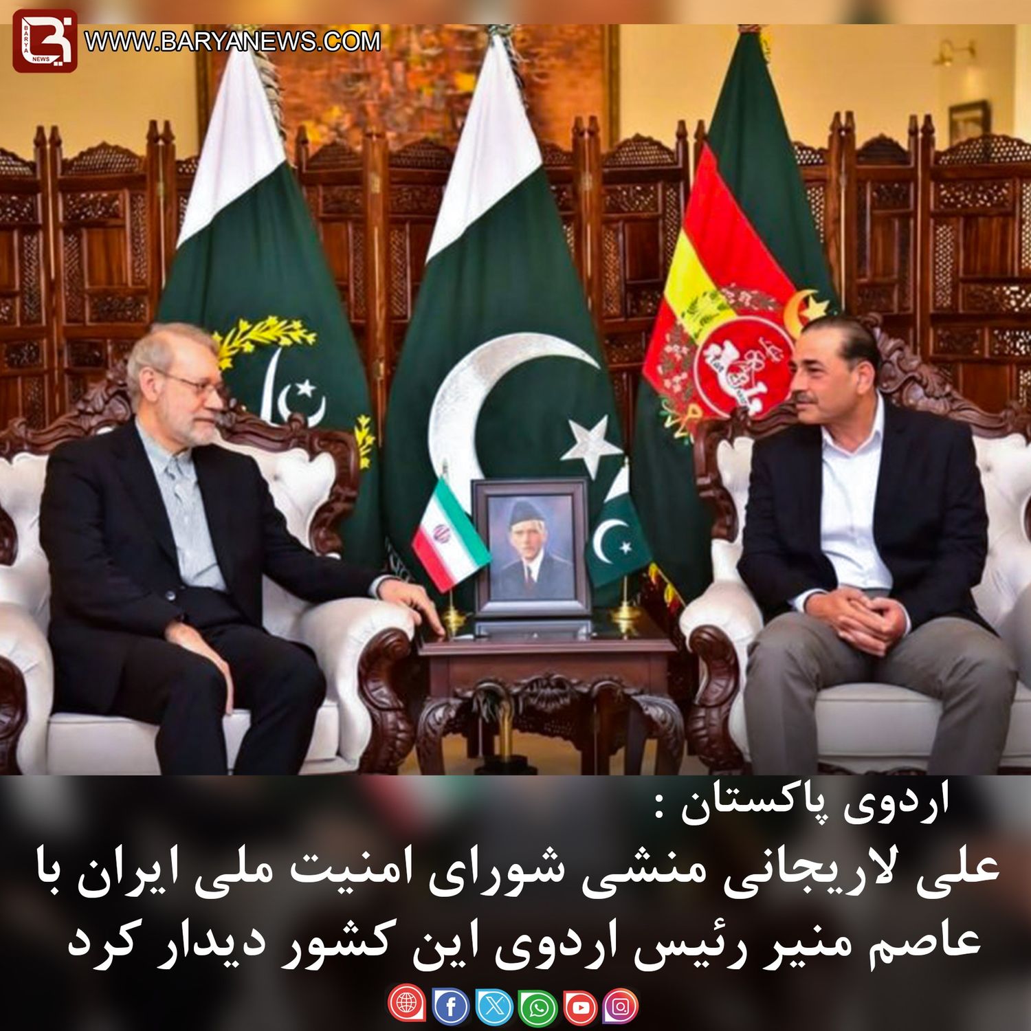 بریانیوز: (۶قوس/ لیندی) اردوی پاکستان اعلام کرده است که علی لاریجانی، منشی شورای امنیت ملی جمهوری اسلامی ایران، با عاصم منیر، رئیس اردوی پاکستان دیدار کرده است. در این دیدار، دو طرف درباره همکاریهای دوجانبه و مسائل مرتبط با امنیت منطقۀ گفتگو کردند.