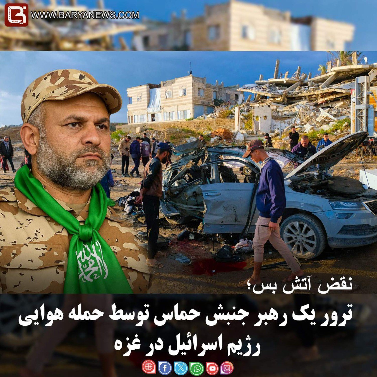 نقض آتش بس؛ تررو یک رهبر جنبش حماس توسط حمله هوایی رژیم اسرائيل در غزه