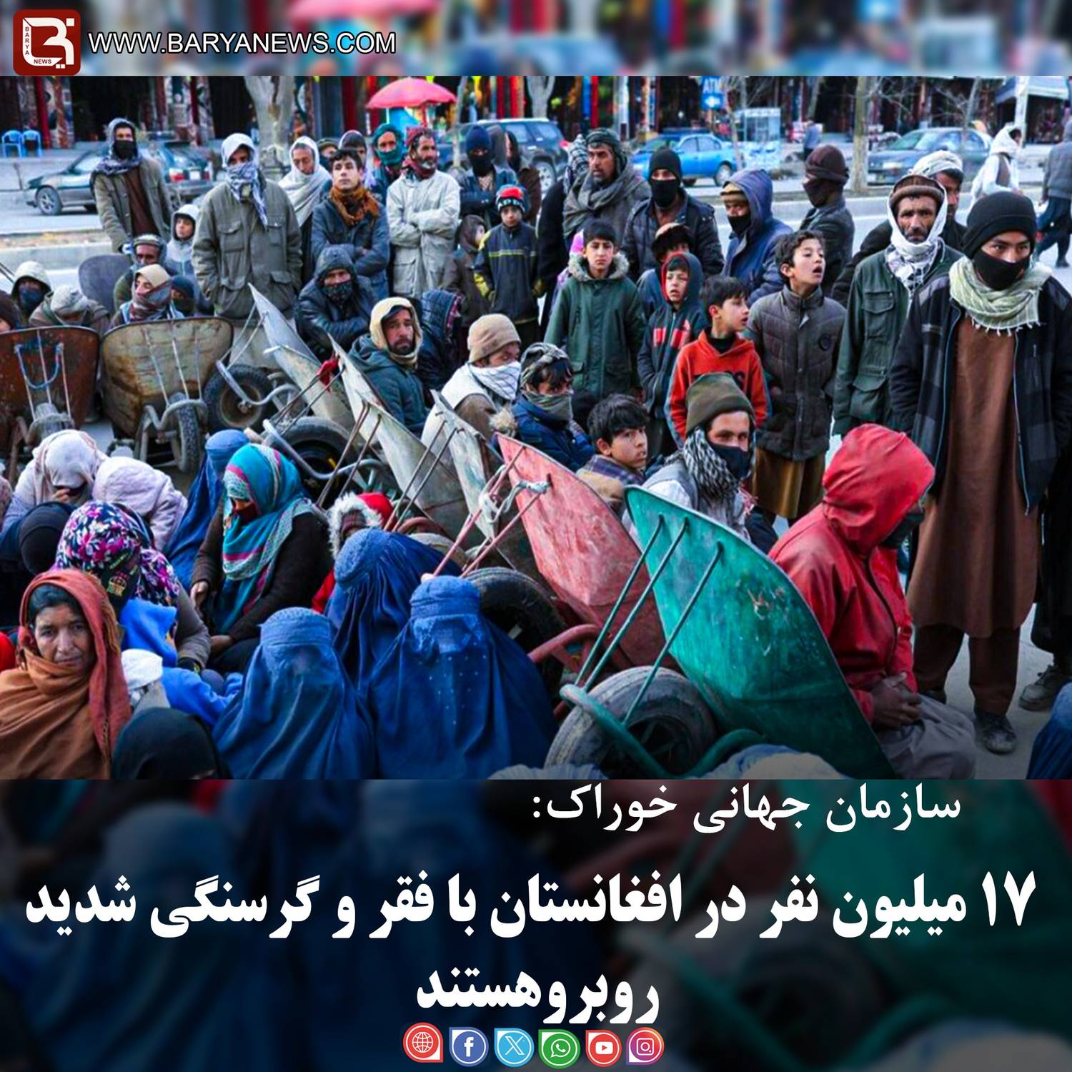 بریانیوز:(سهشنبه، ۲۵ قوس ۱۴۰۴) سازمان جهانی خوراک در گزارشی اعلام کرده است که شمار افرادی که در افغانستان با ناامنی حاد غذایی روبهرو هستند، در زمستان جاری افزایش یافته و از ۱۴.۸ میلیون نفر در سال گذشته به بیش از ۱۷ میلیون نفر در سال جاری رسیده است.