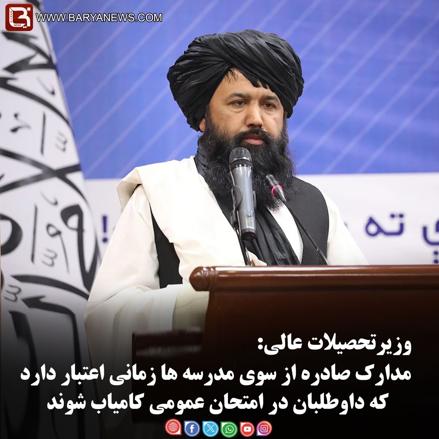 به گفتۀ او، امسال برپایهی پیشنهاد رهبر امارتاسلامیافغانستان، تنها همان امتحانی معتبر خواهد بود که از سوی وزارتهای تحصیلاتعالی، معارف وسایرادارههای ذیربط برگزارمیشود.