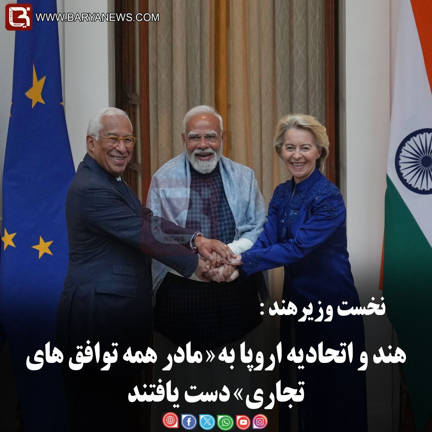 بریانیوز(چهارشنبه، ۸ دلو۱۴۰۴) نرندرا مودی، نخستوزیر هند، اعلام کرده است که کشورش به یک توافق تجارت آزاد با اتحادیه اروپا دست یافته؛ توافقی که از سوی دو طرف «مادرِ همه توافقها» توصیف شده است.
